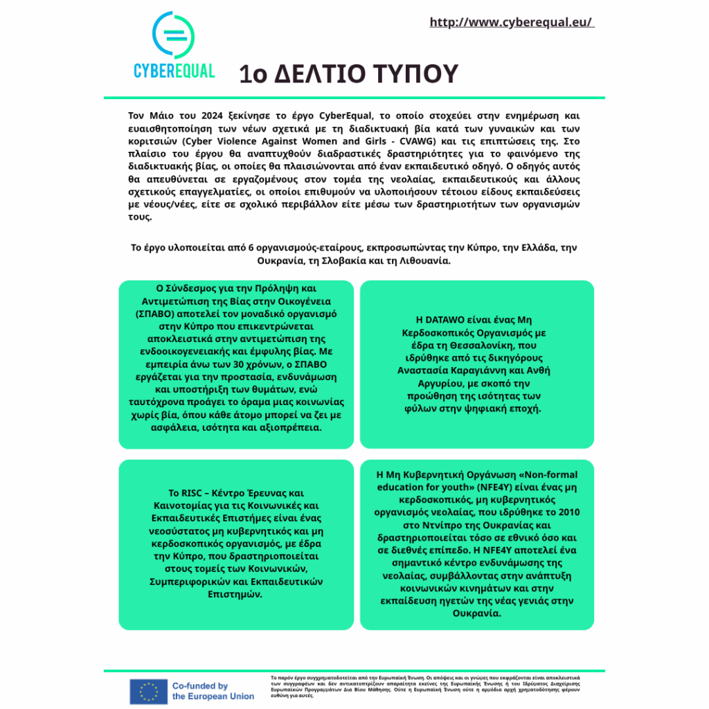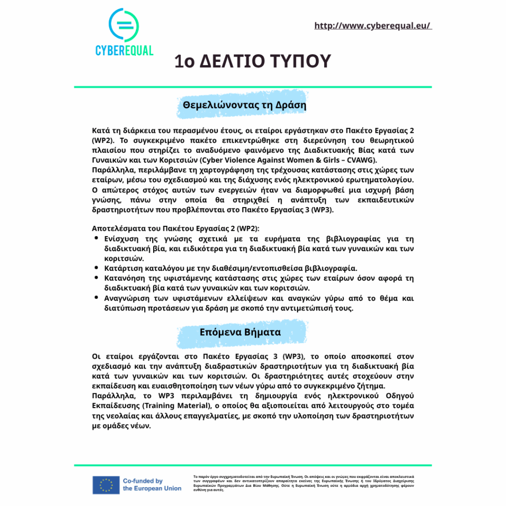 Δελτίο Τύπου του έργου CyberEqual: