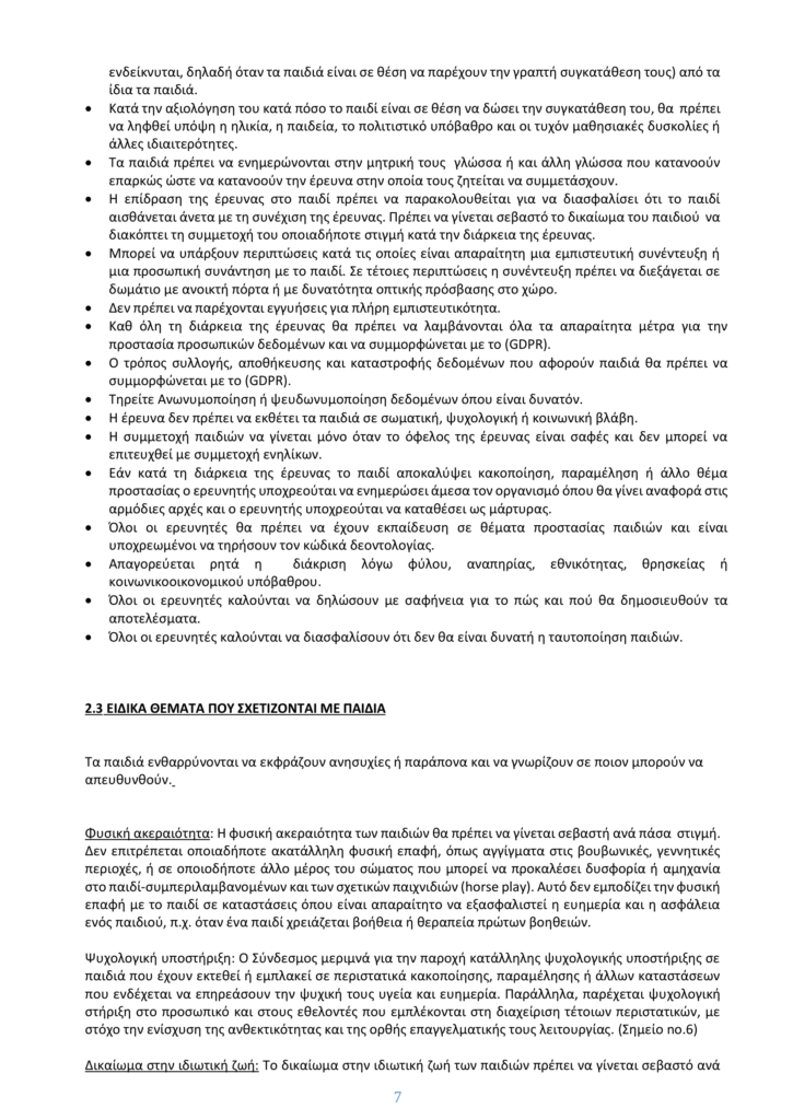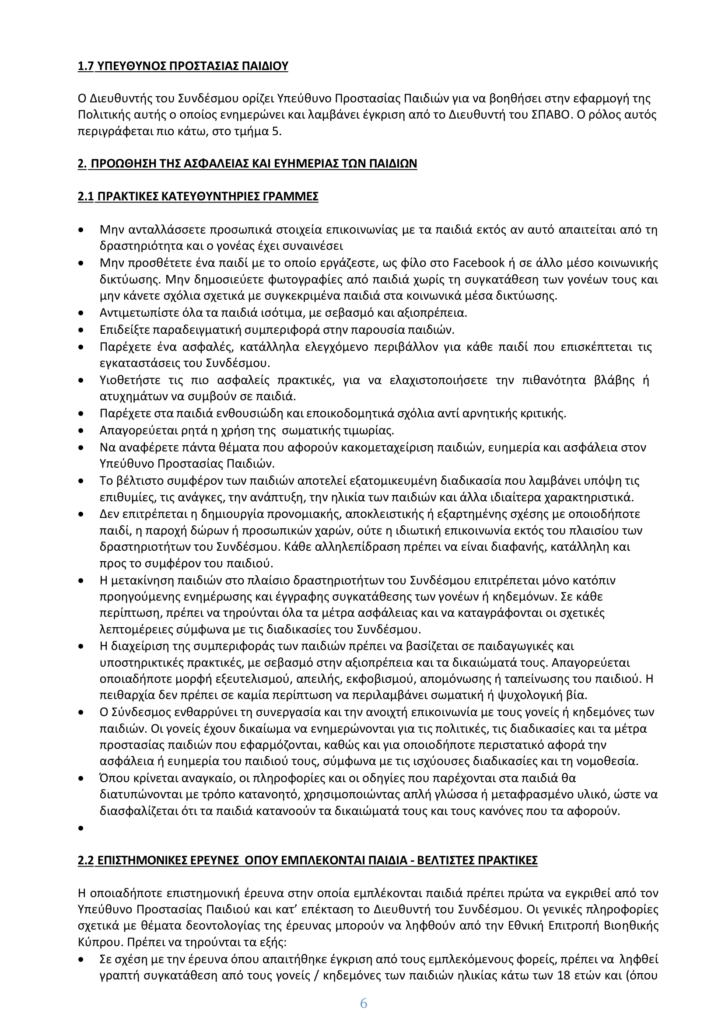 • ΠΟΛΙΤΙΚΗ ΠΡΟΣΤΑΣΙΑΣ ΠΑΙΔΙΩΝ ΚΑΙ ΚΩΔΙΚΑΣ ΔΕΟΝΤΟΛΟΓΙΑΣ
